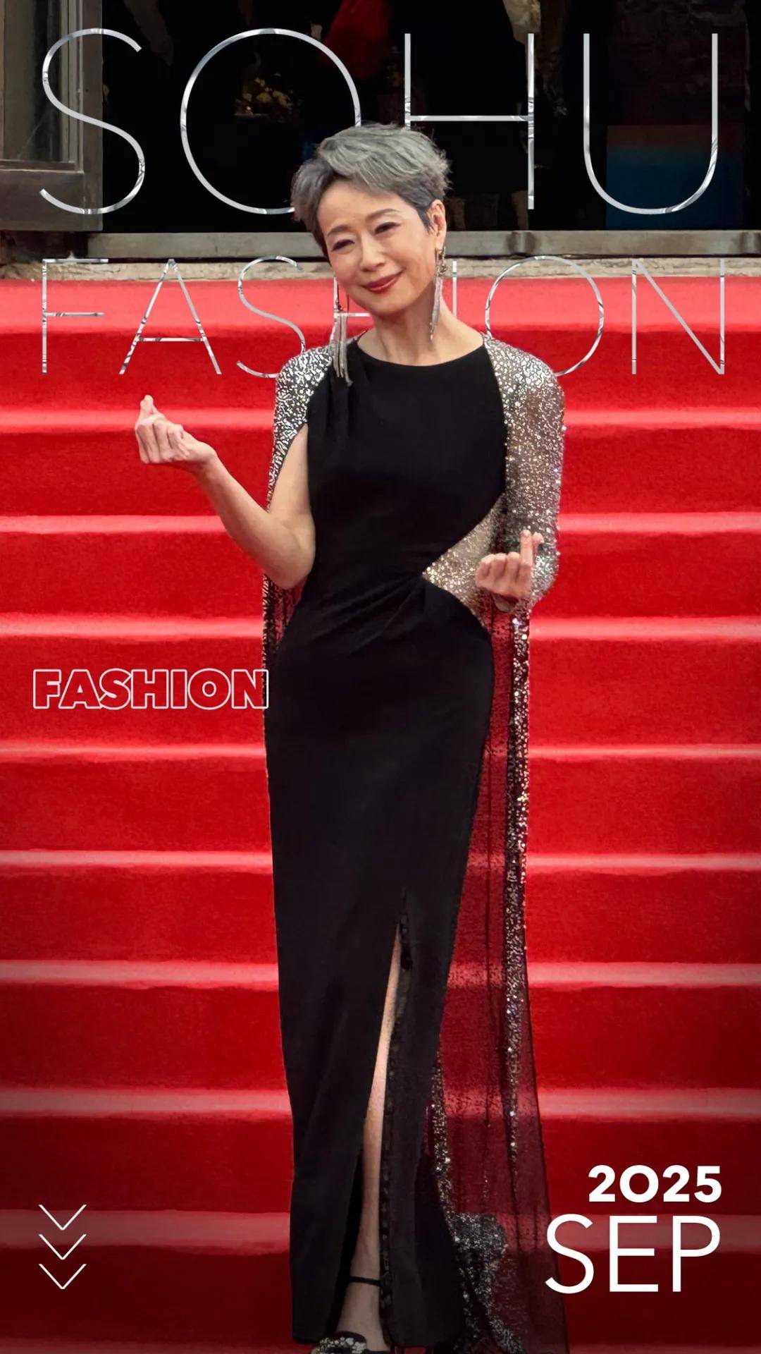 晋升为导演的文淇还凭借《她问》获得【费穆荣誉•最佳短片】 。一身黑色刺绣挂脖礼服优雅得体。