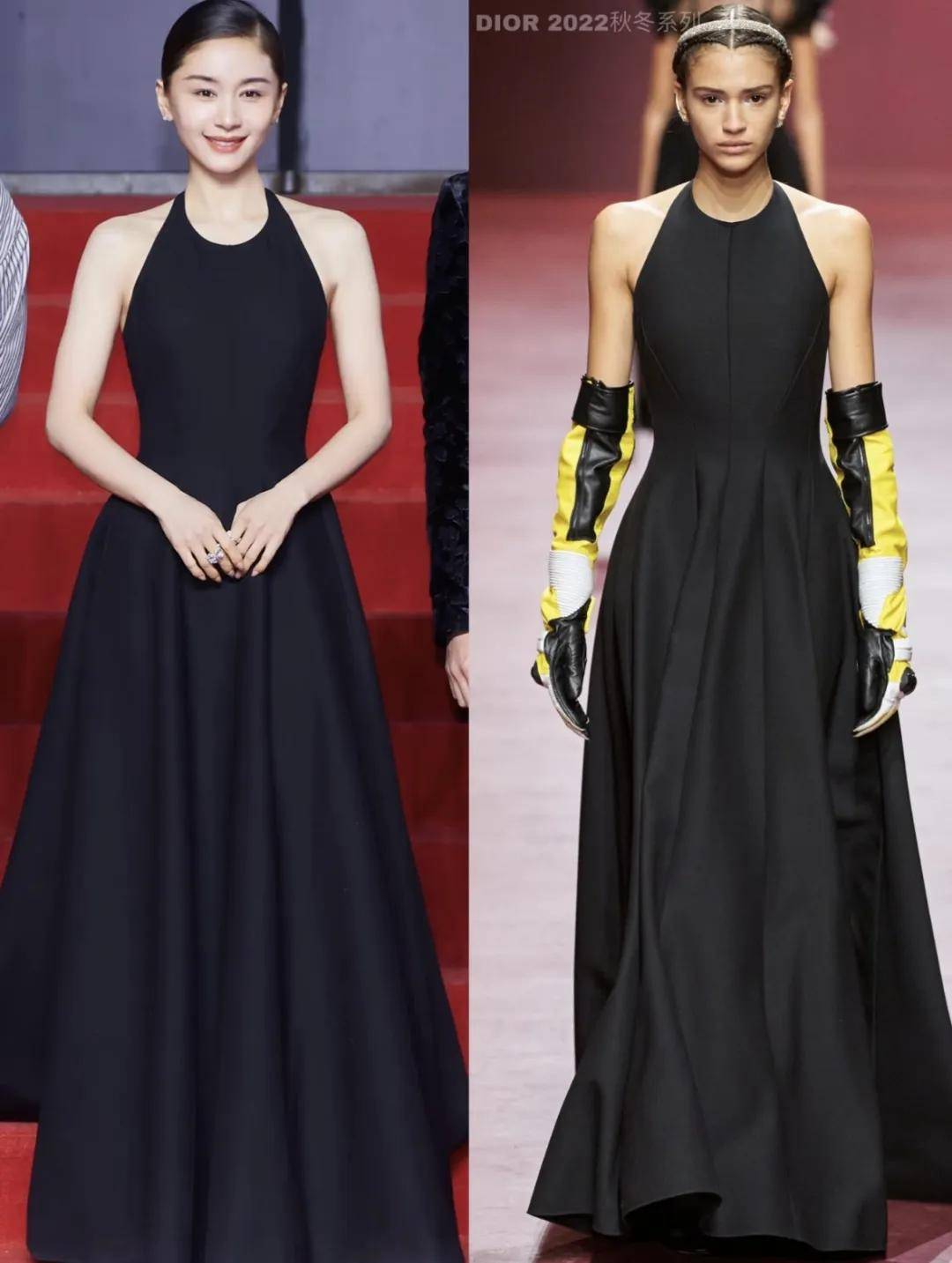 领奖的这条黑色挂脖长裙来自迪奥2022秋冬系列,简单利落的廓形勾勒出女性的曲线和力量感。