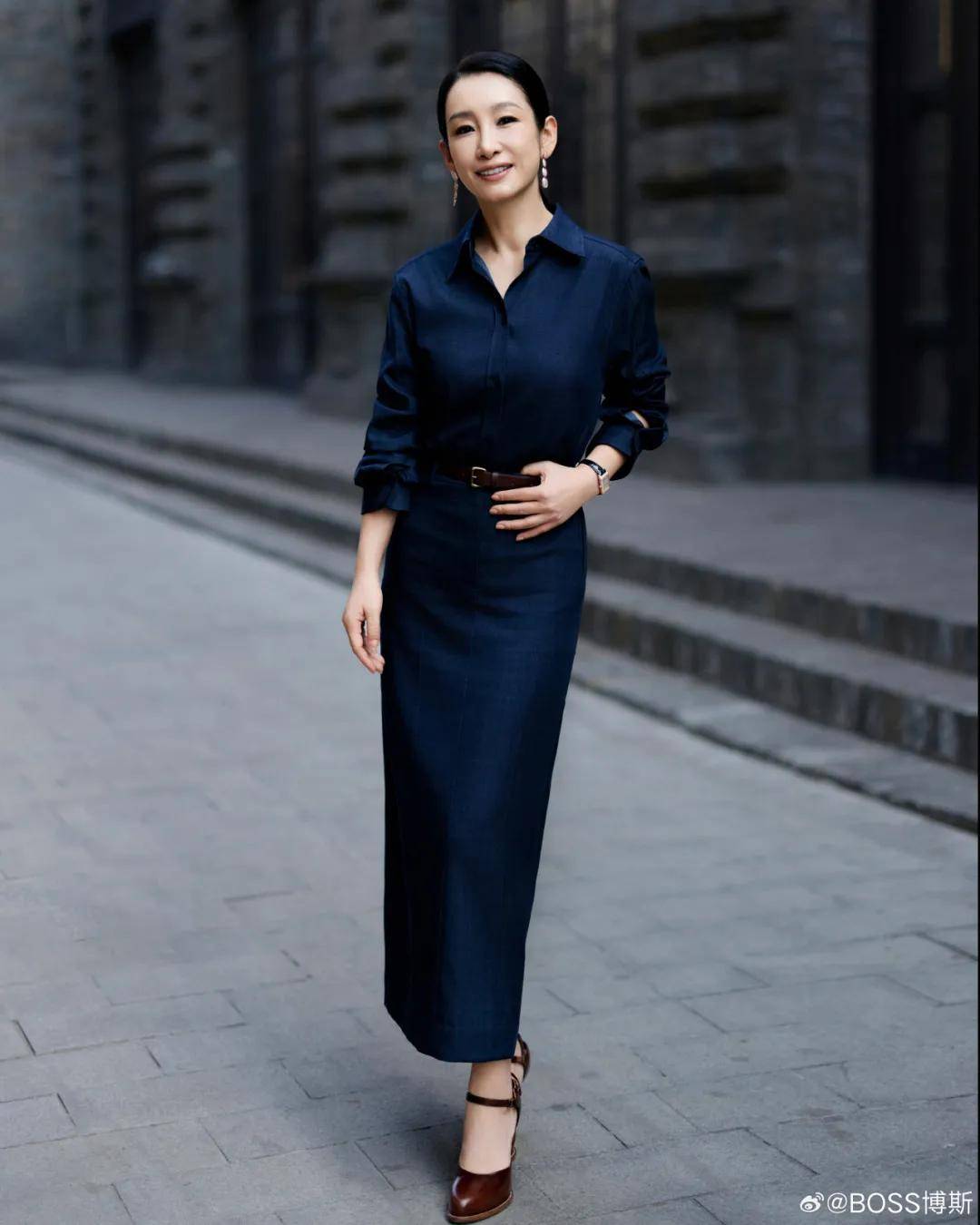 亮相评审见面会时,她以BOSS2024秋冬系列蓝色衬衫搭配西服半裙出席,利落廓形优雅从容,举手投足间释放知性魅力。